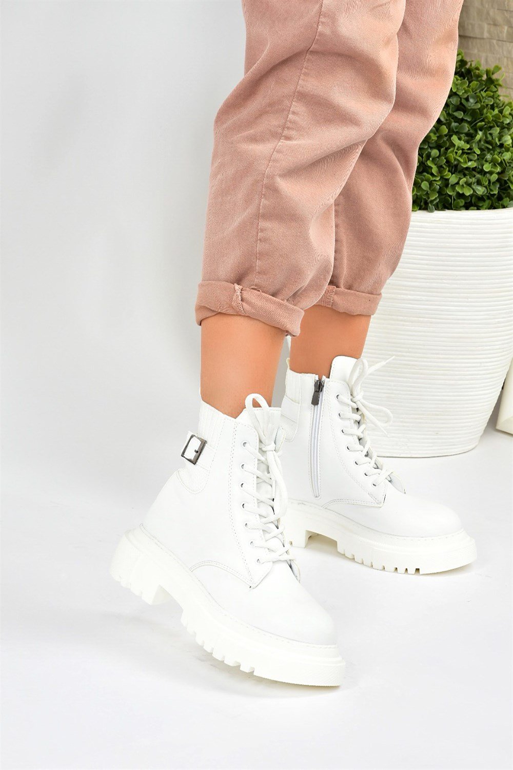 Beyaz Kalın Tabanlı Günlük Kadın Bot L380502509
