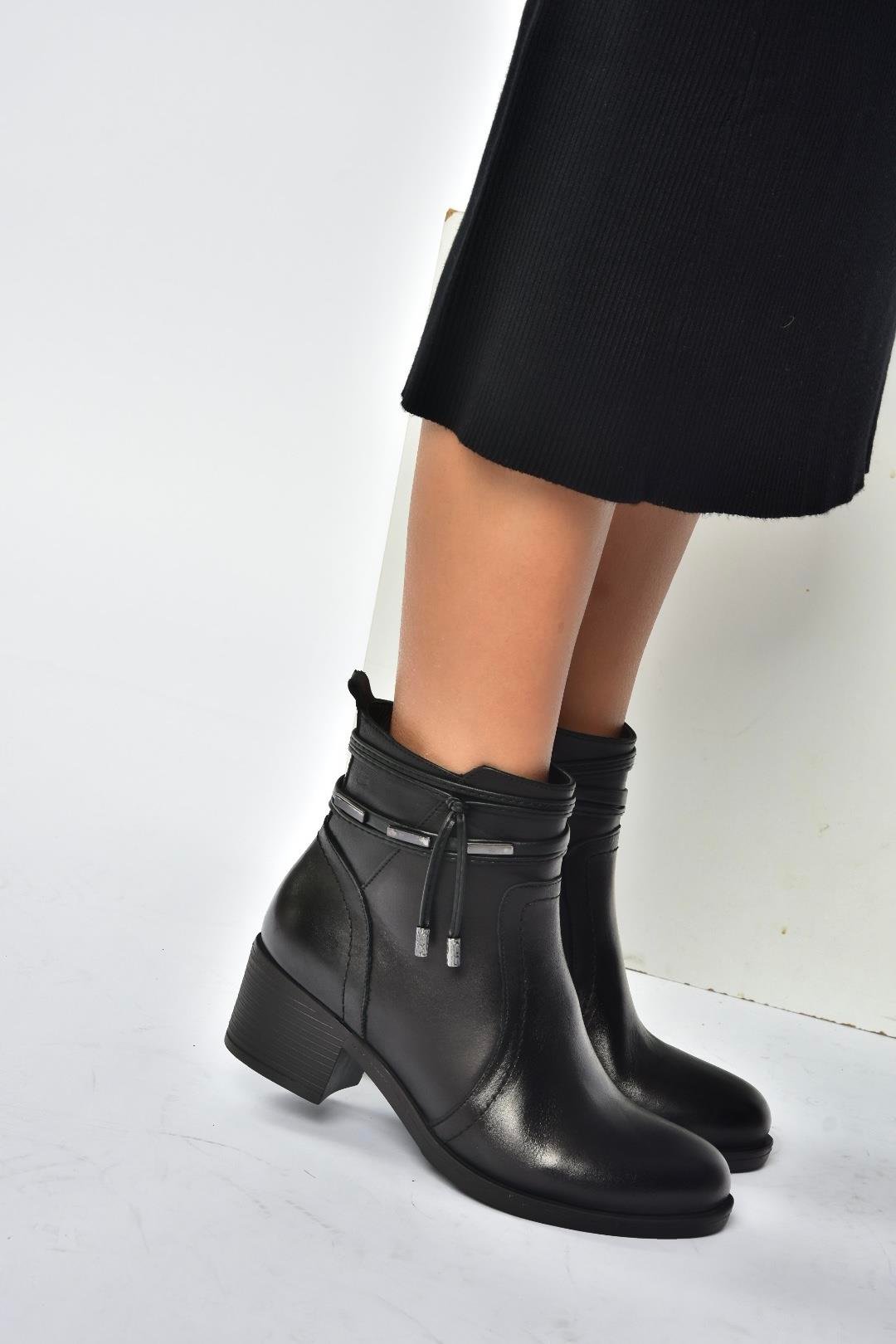 T555703303 Siyah Hakiki Deri Kalın Topuklu Kadın Bot (T5557033)