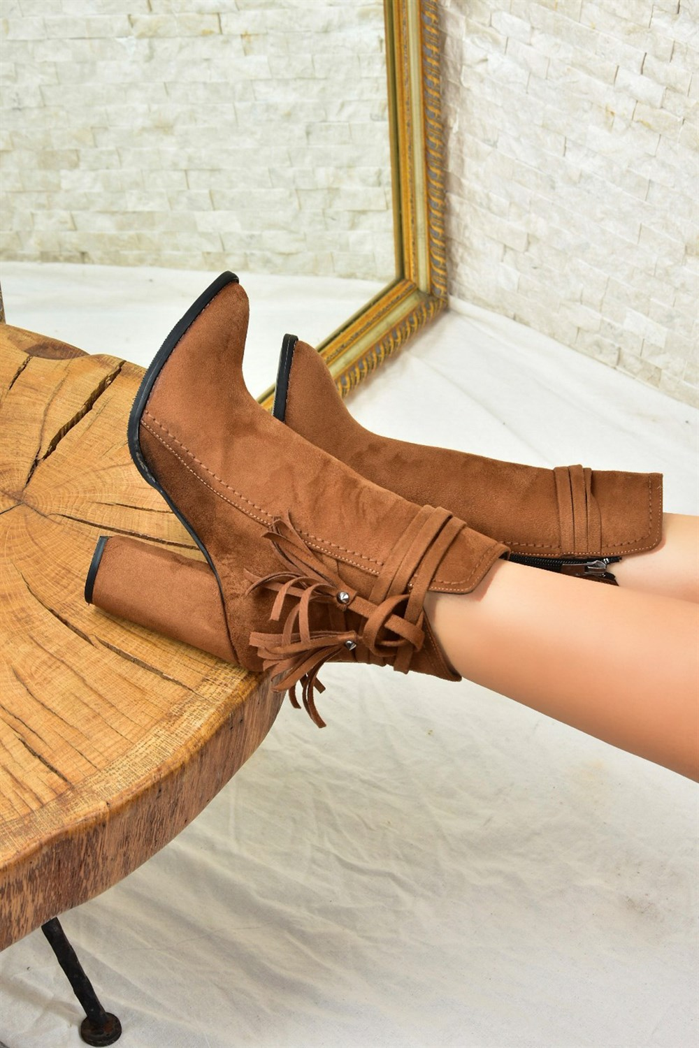 Taba Süet Kalın Topuklu Kadın Bot L630811902