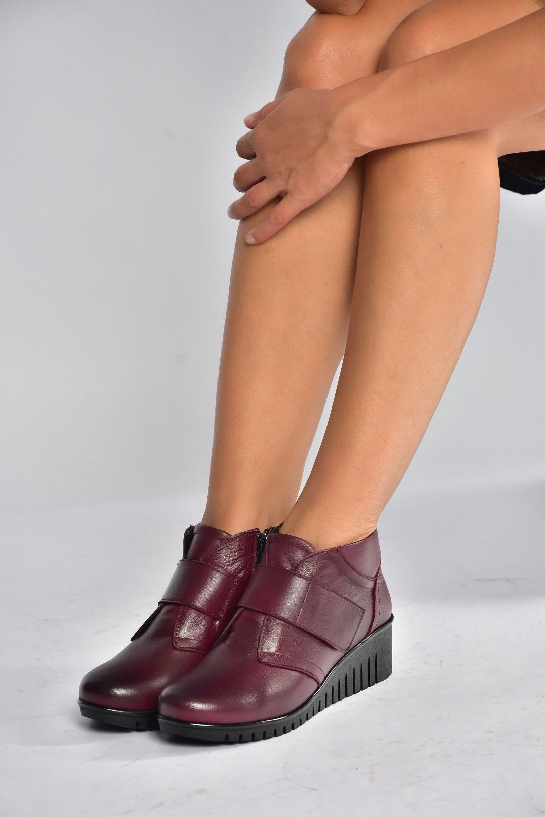 V324501903 Bordo Hakiki Deri Cırtlı Kadın Bot