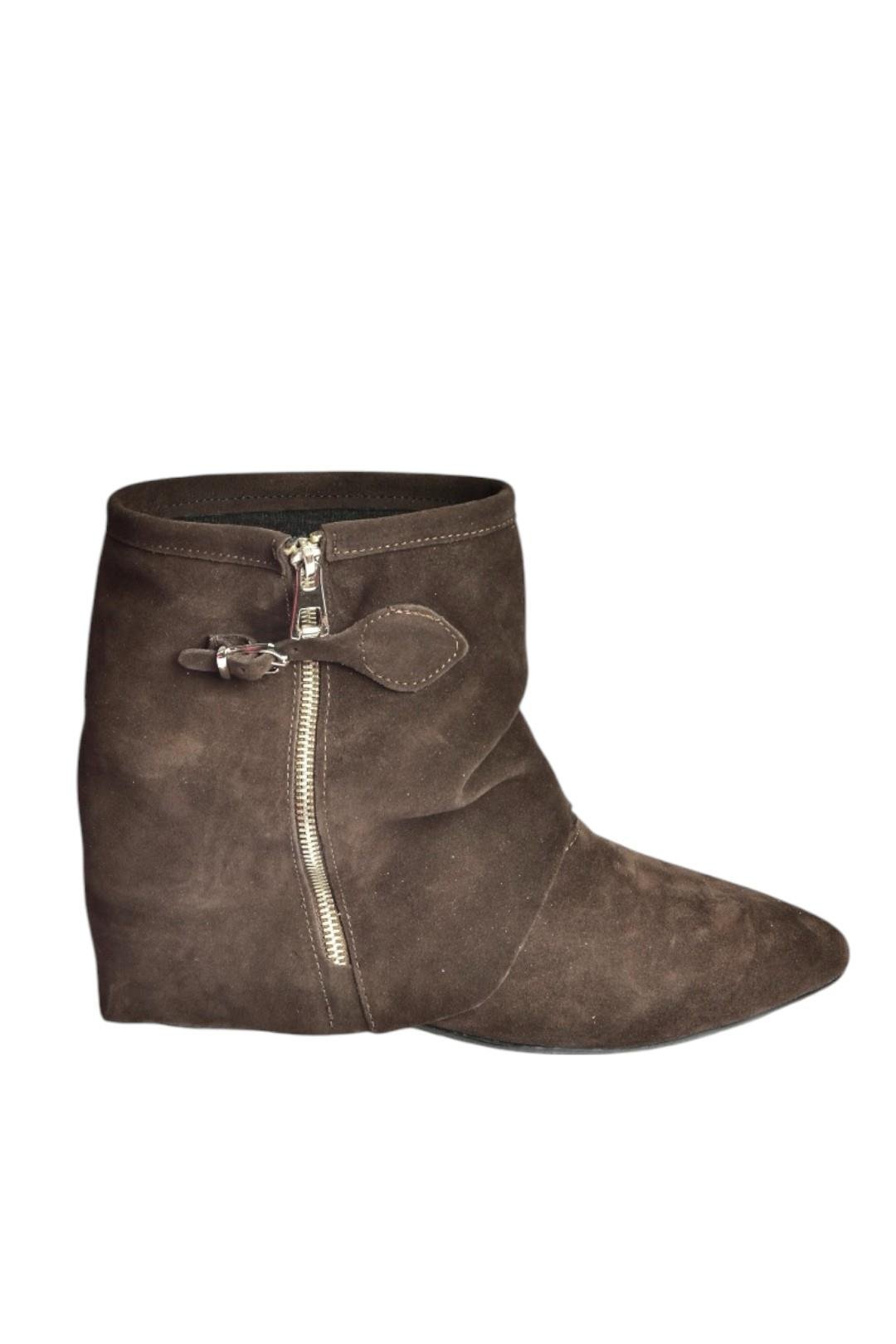 V380518102 Kahverengi Süet Düz Taban Fermuar Detaylı Kadın Bot
