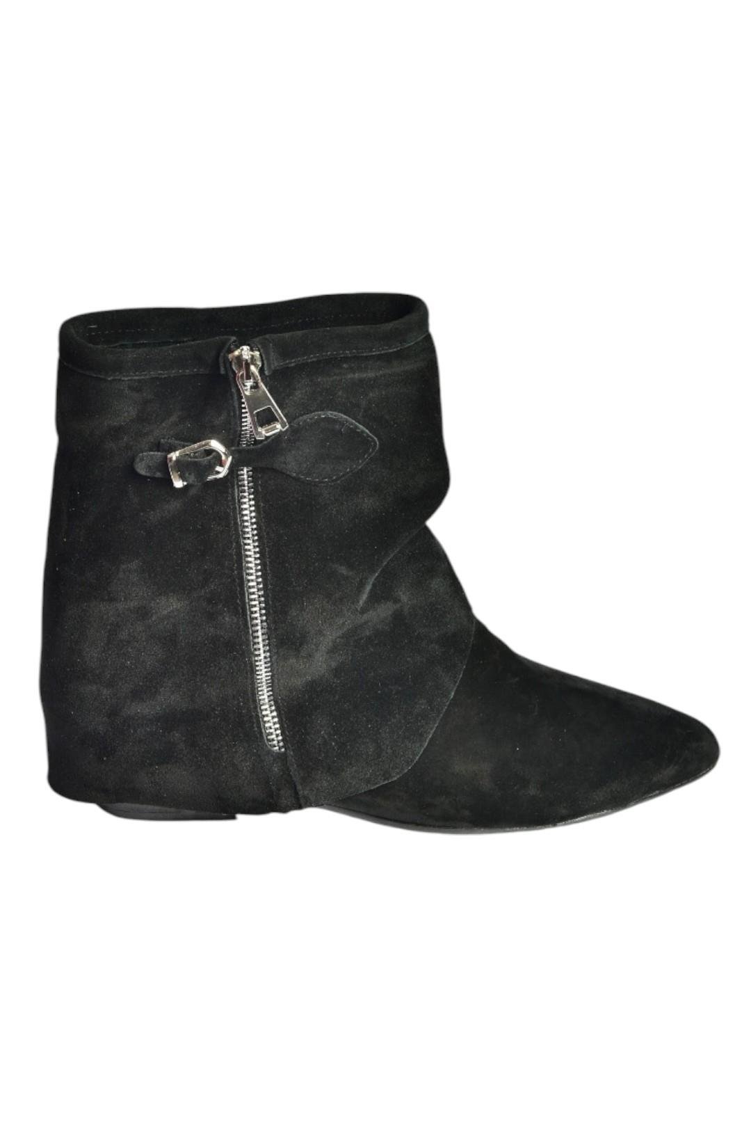 V380518102 Siyah Süet Düz Taban Fermuar Detaylı Kadın Bot