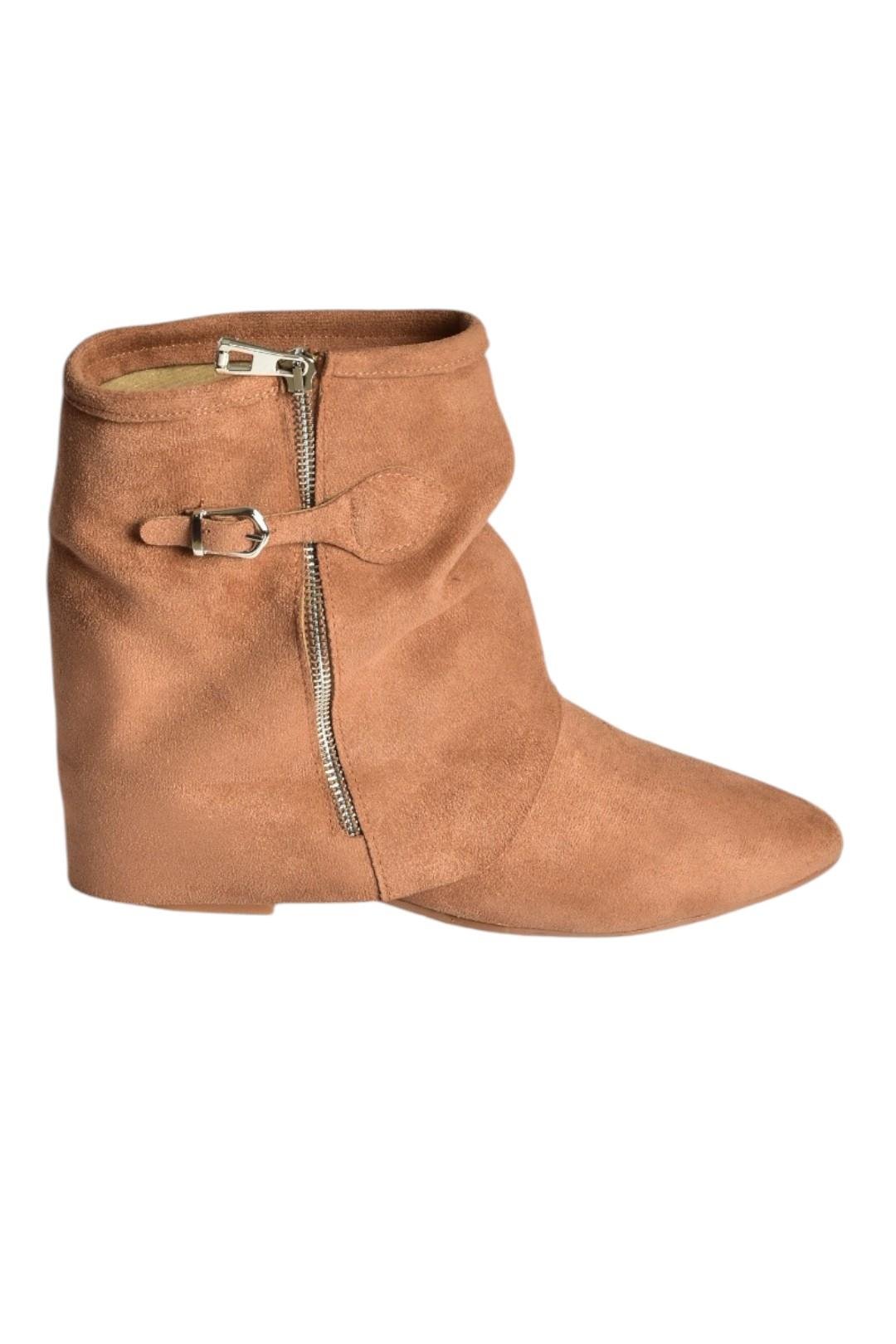 V380518102 Taba Süet Düz Taban Fermuar Detaylı Kadın Bot (V3805181)