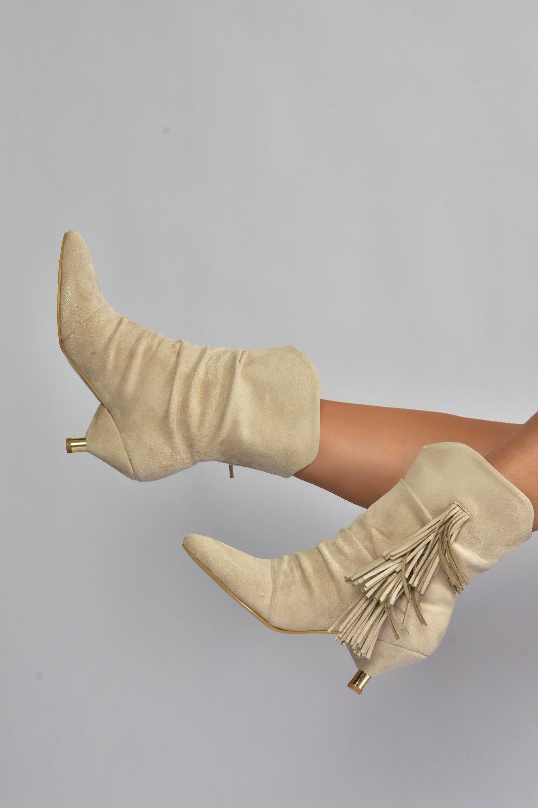 V404022202 Ten Süet Alçak Topuklu Püsküllü Kadın Bot