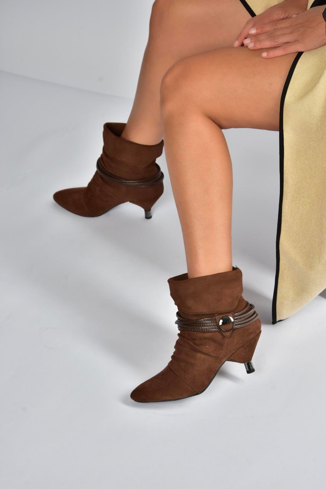 V404022302 Kahverengi Süet Alçak Topuklu Kadın Bot
