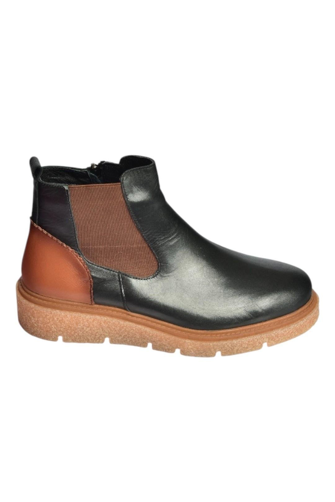 V555115103 Siyah Hakiki Deri Kalın Tabanlı Kadın Bot