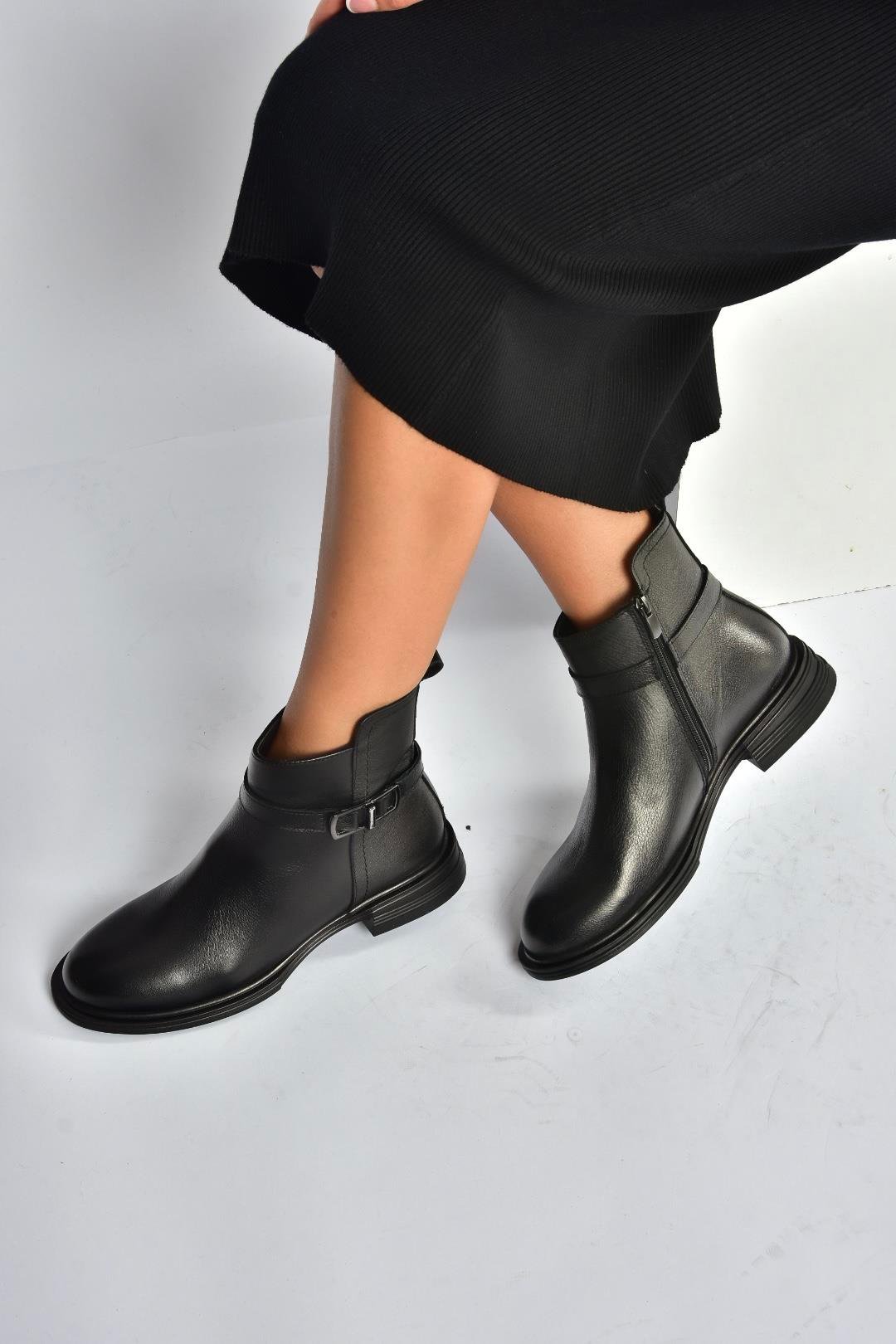 V555255503 Siyah Hakiki Deri Kadın Bot