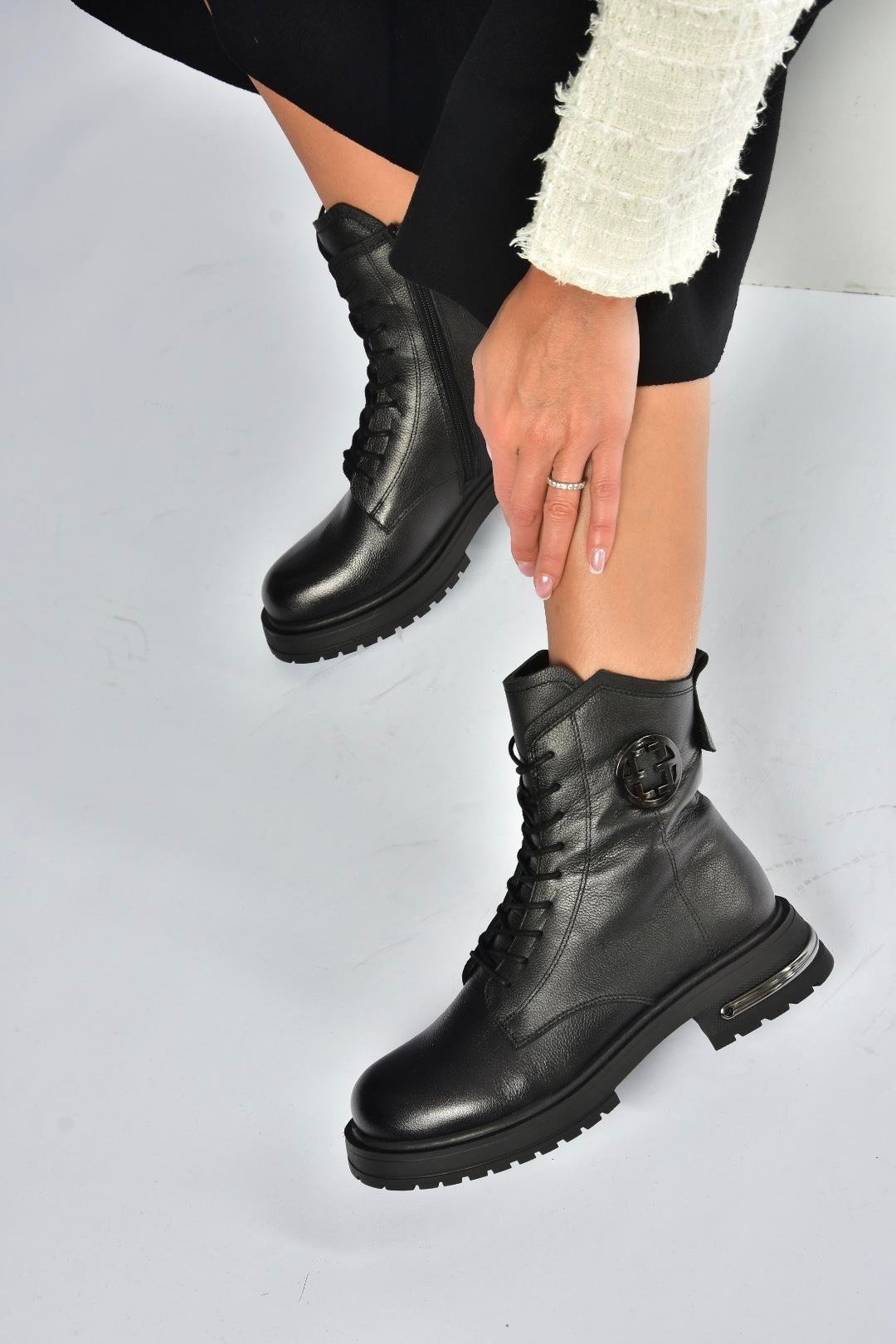 V555575503 Siyah Hakiki Deri Kadın Postal Bot (V5555755)